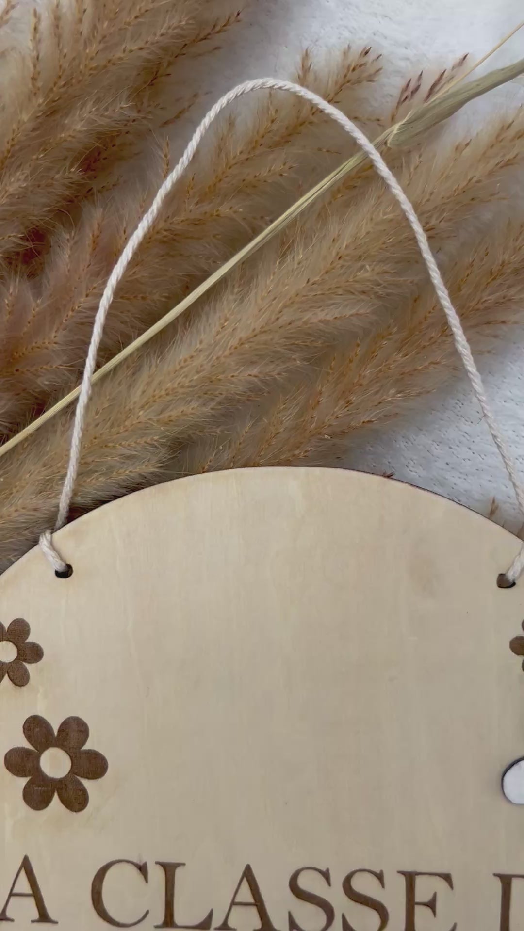 Offrez (ou décorez) avec douceur la porte ou le mur de la classe grâce à ce panneau en bois personnalisé, gravé avec l’inscription “La classe de Maîtresse” et le prénom de la maîtresse.